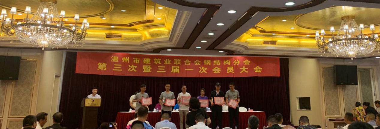 7月10日下午,我市在王朝大酒店召開溫州市建筑業(yè)聯(lián)合會鋼結(jié)構(gòu)分會第三次暨三屆一次會議大會。溫州市建筑業(yè)聯(lián)合會會長胡正華、副會長諸經(jīng)宇,鋼結(jié)構(gòu)分會會長方云杰等出席會議。